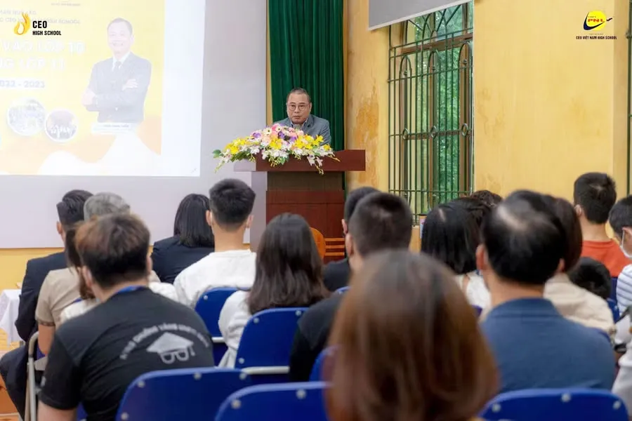 Ông Phan Đức Tuệ phát biểu trong Kỳ sơ tuyển năm học 2022 - 2023 Trường THPT Phạm Ngũ Lão vận hành bởi CEO High School