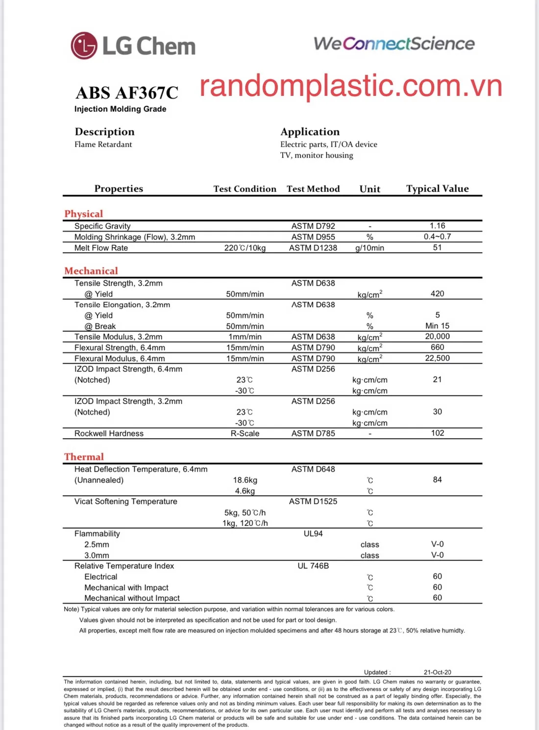 Hạt nhựa ABS chống cháy AF 367C có tên đầy đủ là Acrylonitrin Butadien Styren. Cùng công thức hóa học của nó là C8H8-C4H6-C3H3N. Nó sở hữu rất nhiều tính năng vượt trội thông qua các thành phần tạo nên. Sự phối hợp giữa Acrylonitrin với Styren và các Polybutadiene làm cho kết cấu nhựa thêm cứng rắn. Bên cạnh đó, nó còn được làm từ nhựa nguyên sinh và không qua tái chế. Vậy nên không quá ngạc nhiên khi chúng được yêu thích hơn so với các loại nhựa khác.