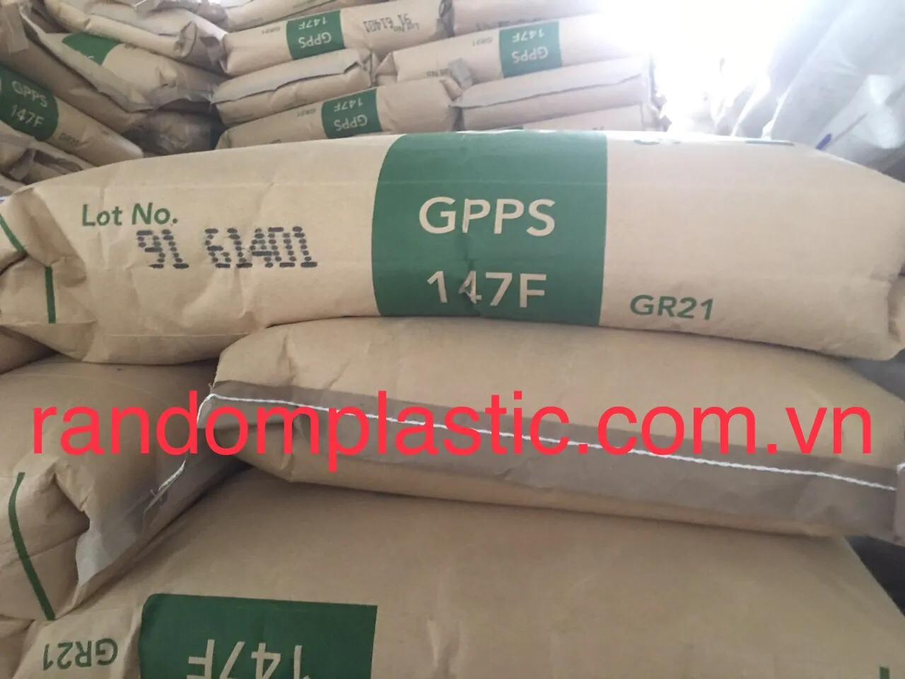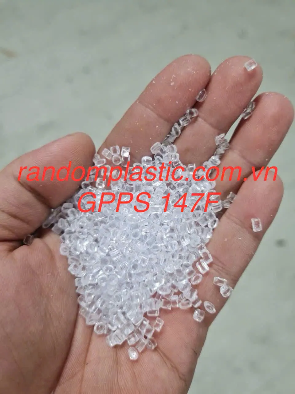 - Hạt nhựa nguyên sinh GPPS 147F (General Purpose Polystyrene 147F) được sản xuất từ polystyrene, thông thường sẽ có màu trắng trong tự nhiên, được dùng làm mặt đồng hồ treo tường, vỏ công tơ điện, khay hộp thực phẩm, đựng bánh kẹo, làm lọ mỹ phẩm cao cấp…