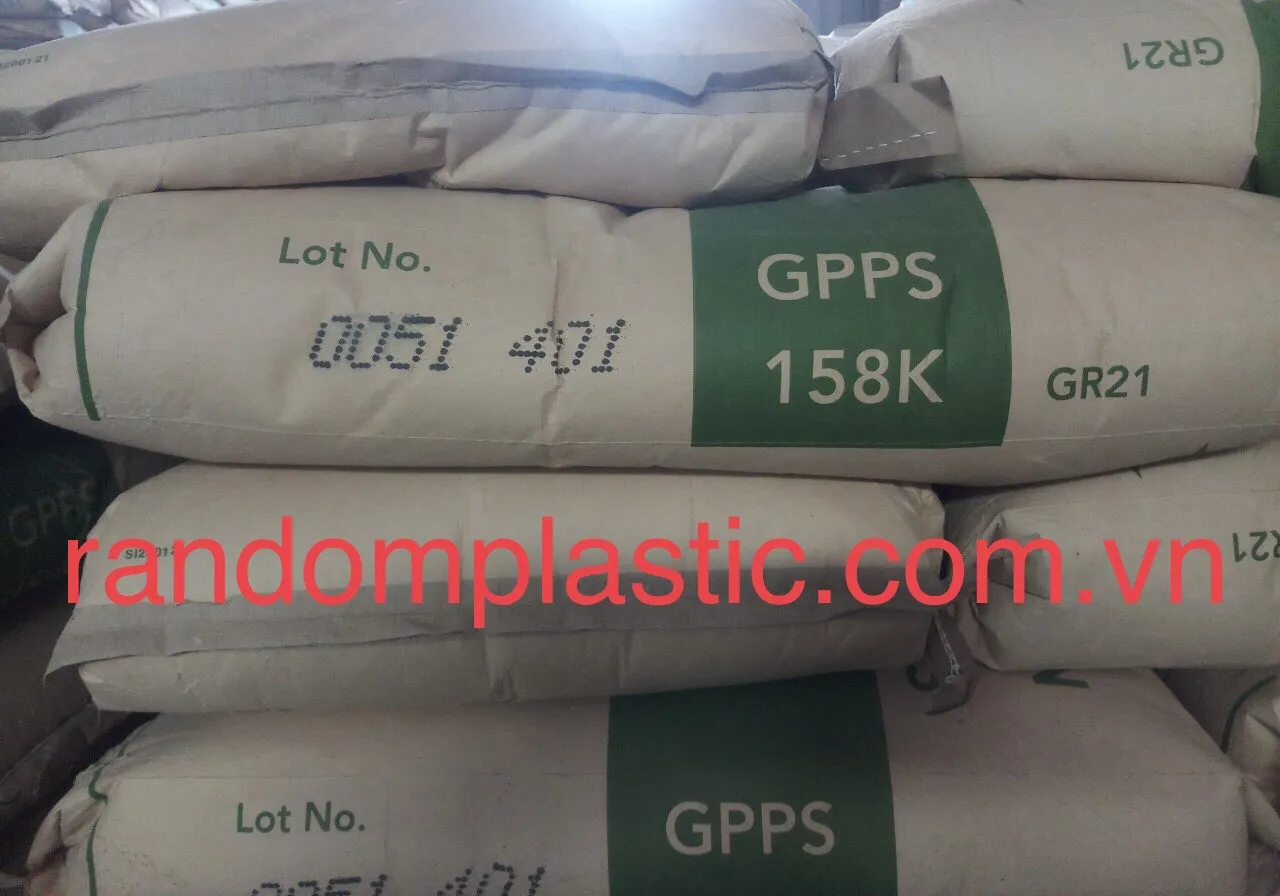 - Hạt nhựa nguyên sinh GPPS 158K (General Purpose Polystyrene 158K) được sản xuất từ polystyrene, thông thường sẽ có màu trắng trong tự nhiên, được dùng làm mặt đồng hồ treo tường, vỏ công tơ điện, khay hộp thực phẩm, đựng bánh kẹo, làm lọ mỹ phẩm cao cấp…