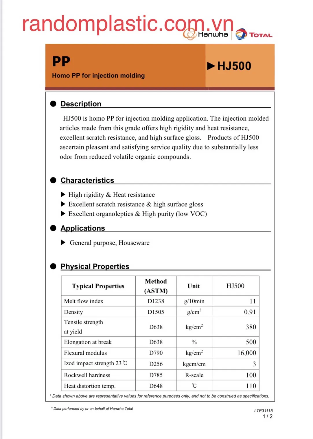 - Download tài liệu Hạt nhựa PP nguyên sinh HJ500 tại đây