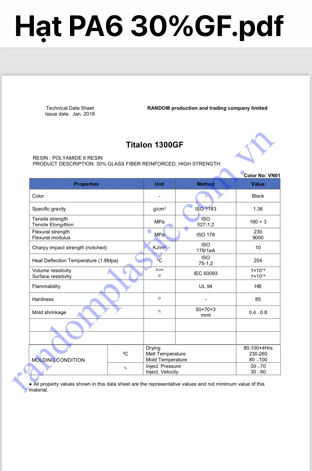 - Mã sản phẩm: PA6 30%GF