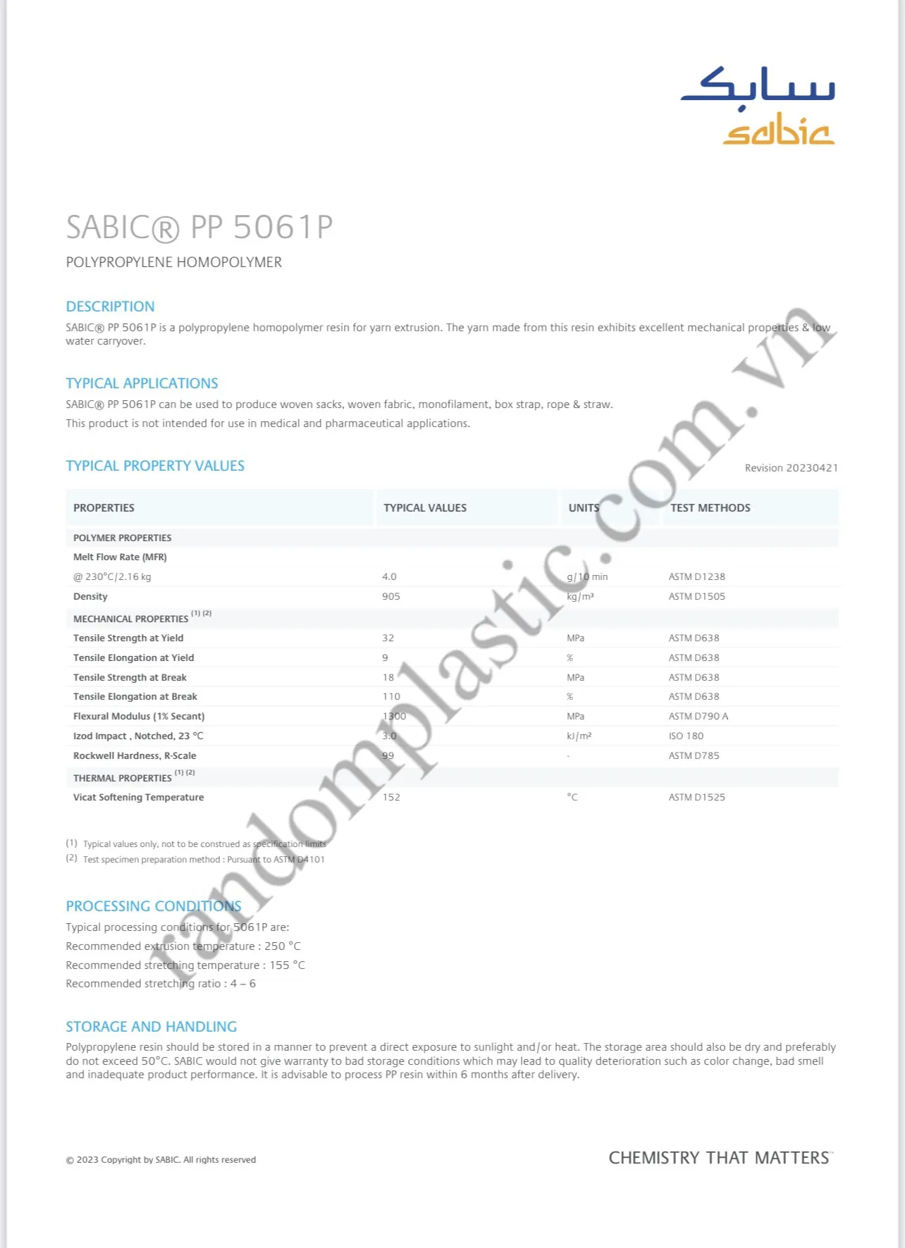 Ứng dụng trong sản xuất: PP kéo sợi (Yarn) kéo sợi, dệt bao bì đựng thực phẩm, thức ăn chăn nuôi, dây đai,...dẻo dai, bền chắc.