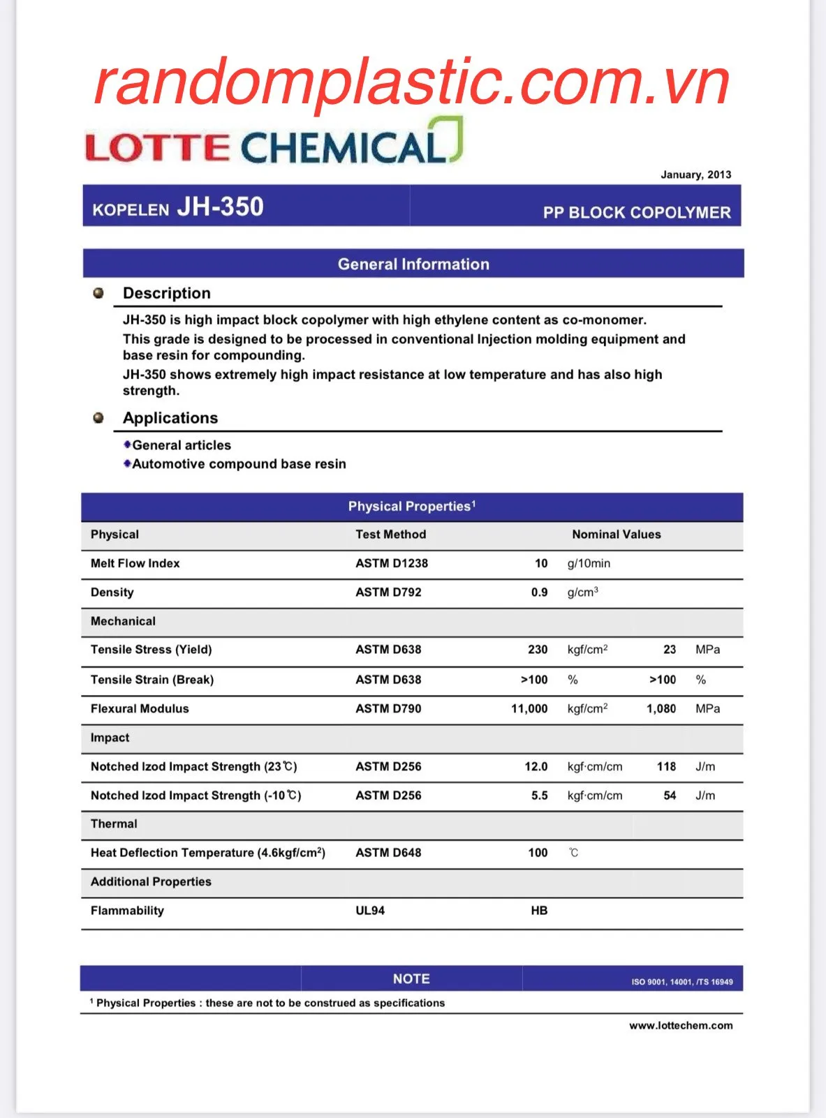 Đặc tính: Hạt nhựa nguyên sinh PP JH350
