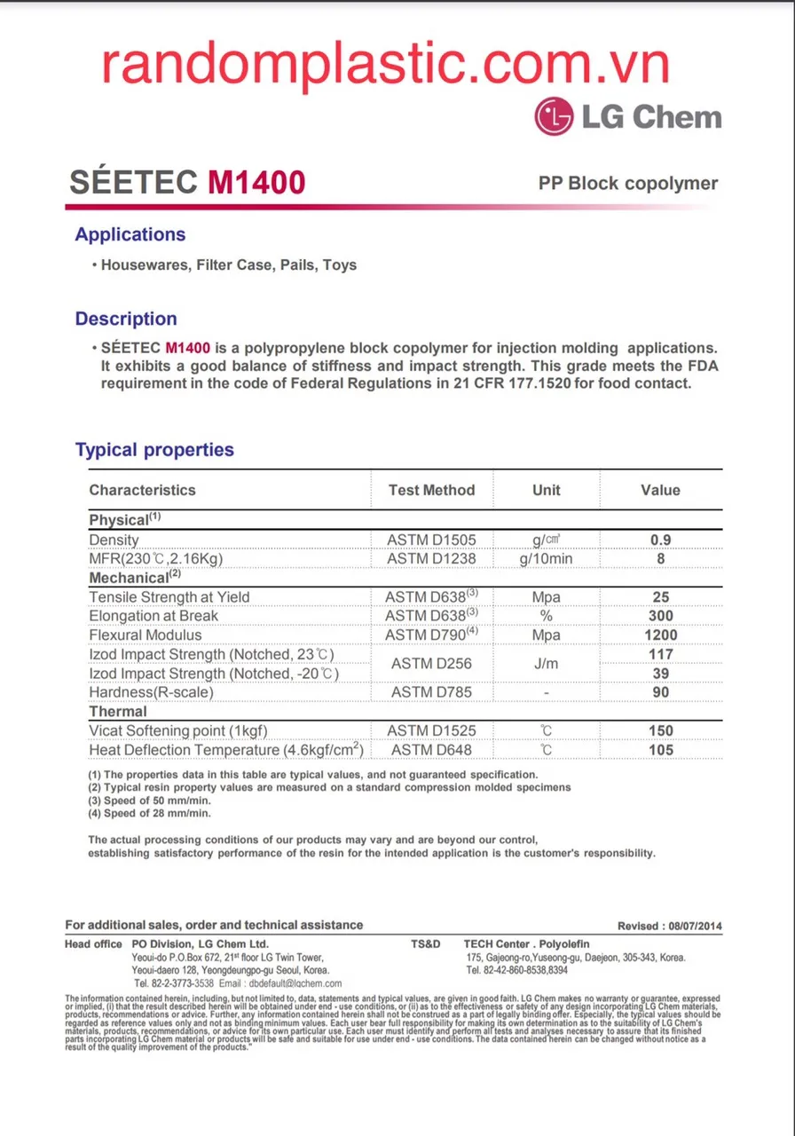 Hạt nhựa nguyên sinh PP M1400